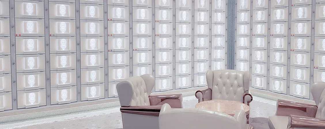 The royal suite features exquisite glass fronted niches, emulating the golden glamorous grace of imperial mausoleums from ancient times. The Royal Suite is indeed a classic for families to honour their esteemed ancestors, benefitting future generations with bliss and prosperity.